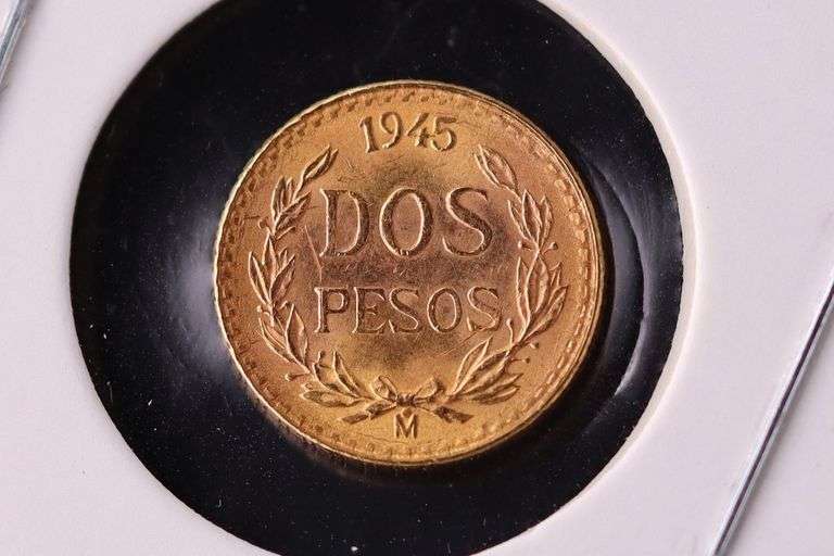 LOT 4148 - 1945 Mexico 2 Peso Dos Pesos 1.67g Vintage Mexican Mint Gold Coin .0482 oz