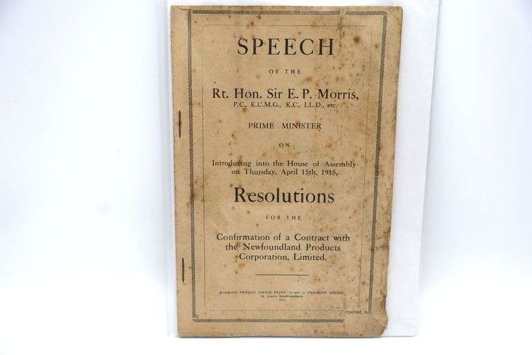 LOT 4341 - 1915, Speech of the Rt. Hon. Sir E.P. Morris