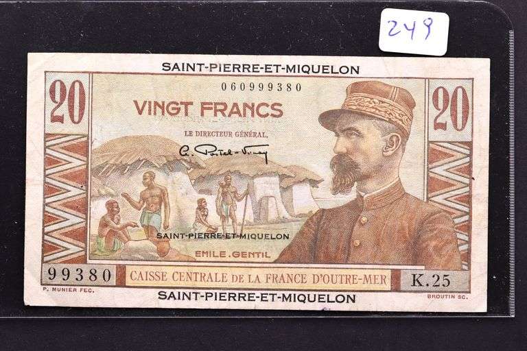 LOT 4249 - 20 FRANCS SAINT PIERRE ET MIQUELON 1946 Scarce Overprint Note