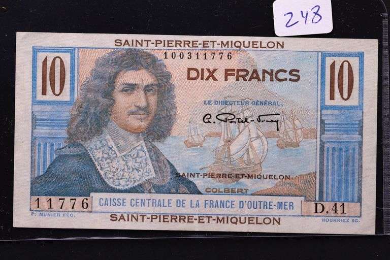 LOT 4248 - 10 FRANCS SAINT PIERRE ET MIQUELON 1946 Scarce Overprint Note