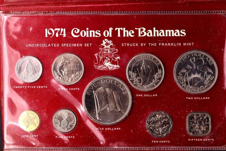 1974 Bahamas Islands 9 Coin Set Franklin Mint