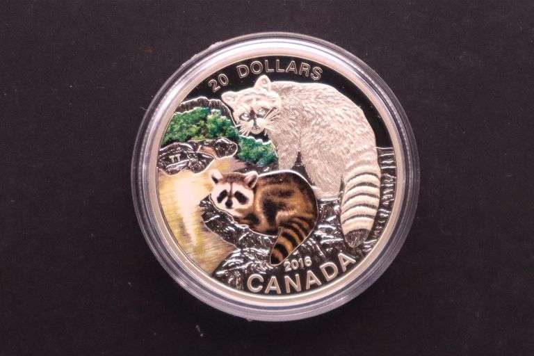 LOT 4153 - 2016 Canada $20 Baby Animals: Raccoon - Pure Silver Coin est $100