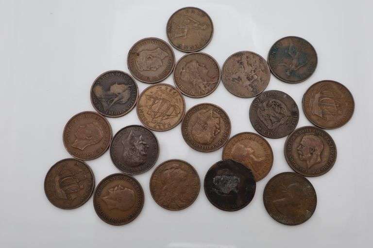 Bag of 19 France and Great Britain Half Pennies - Unchecked