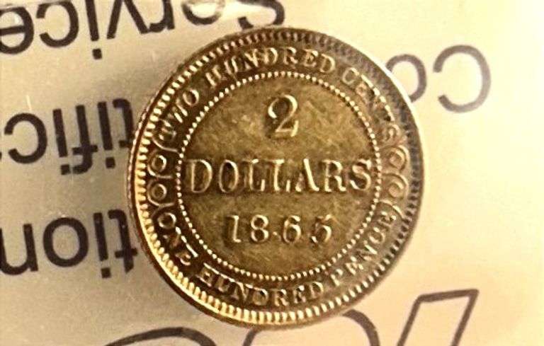 1865 Better Date Newfoundland $2 Gold ICCS Certified AU50 Est. $1000+